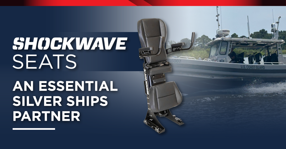 Shockwave Seats is a key partner of Silver Ships, providing high quality shock mitigating seats that protect vessel operators from the shock of wave impact. Shockwave was founded in 2001, and the U.S. Coast Guard was its first customer. Now Shockwave designs and builds shock mitigating seats for militaries worldwide, including for the vessels Silver Ships delivers to military customers.